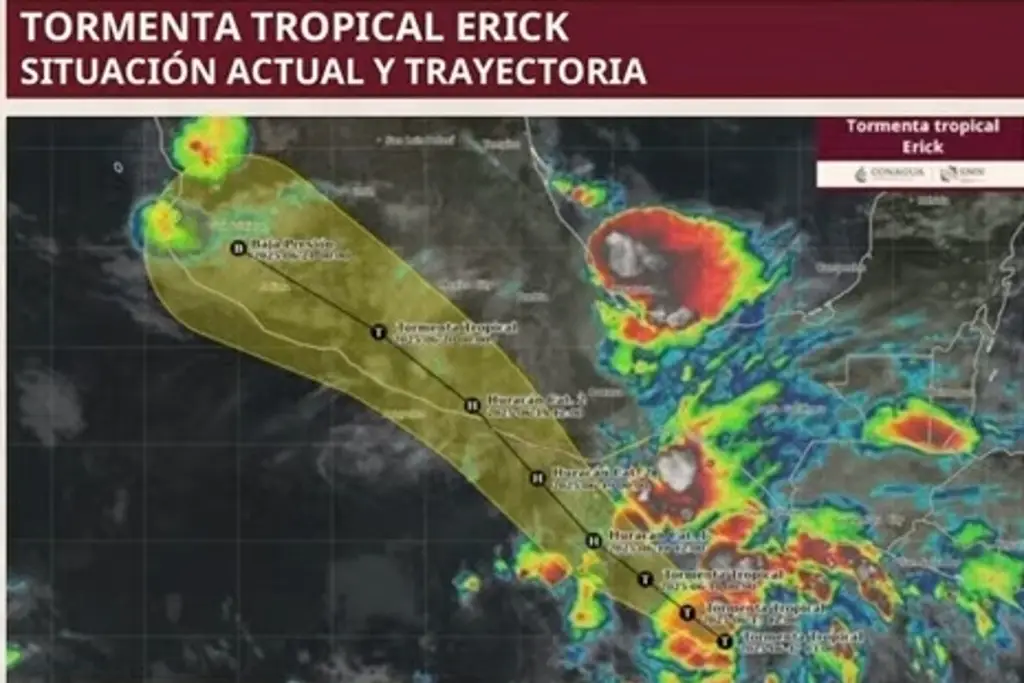 La titular de Protección Civil, Laura Velázquez Alzúa, informó este martes que se mantiene vigilancia a ‘Erick’ por efectos de huracán y sus posibles impactos como categoría 2.